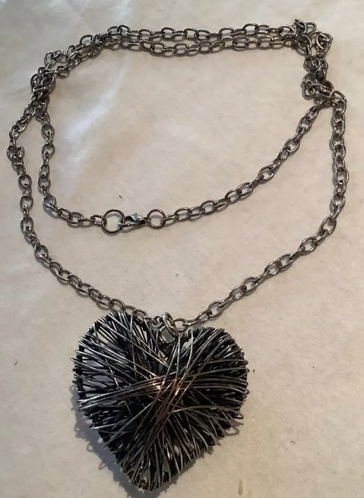 Kedjans längd 80 cm, hänget 6 cm i diameter, 3 cm tjockt, fint skick
