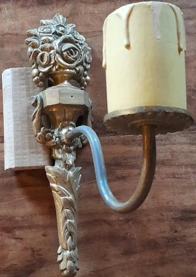 En lampett / vägglampa i gjutjärn, guldfärgad / 30 -40 Tal / Retro