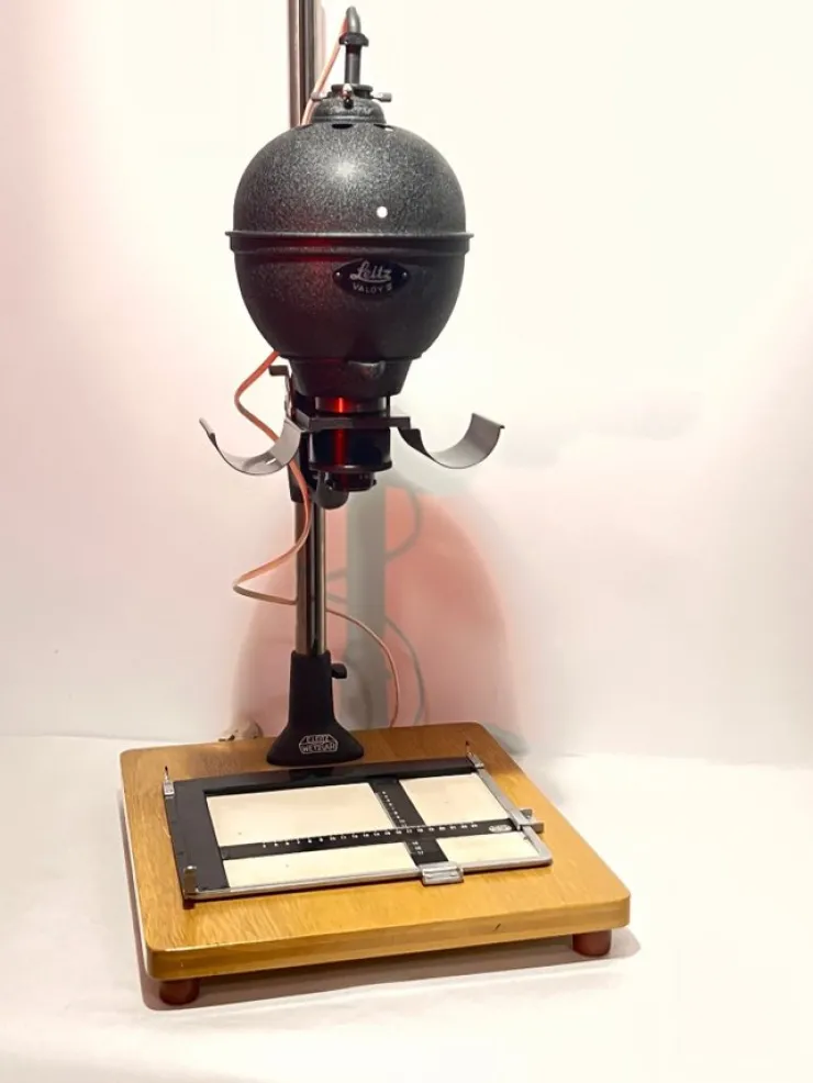 Leitz Valoy 2 fotokopieringsapparat. Enkel och robust konstruktion. Perfekt för den som söker en vintage mörkrumsapparat. Inkluderar negativhållare och basplatta i trä.