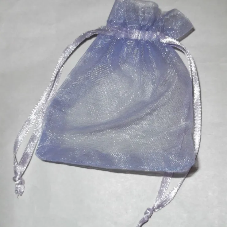 Söt ljuslila smyckespåse med snöre att dra ihop den med. Ca 7,5 x 5 cm stor.