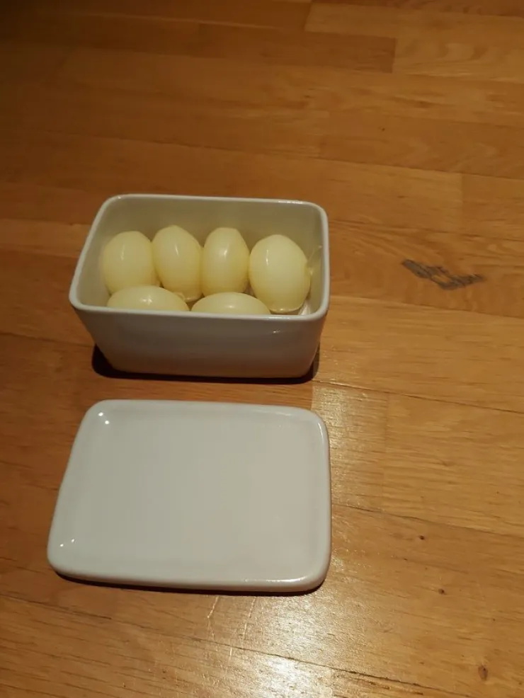 Sælger et sæt med seks små lys i en fin hvid porcelænsæske med låg. Perfekt til at skabe en hyggelig atmosfære.