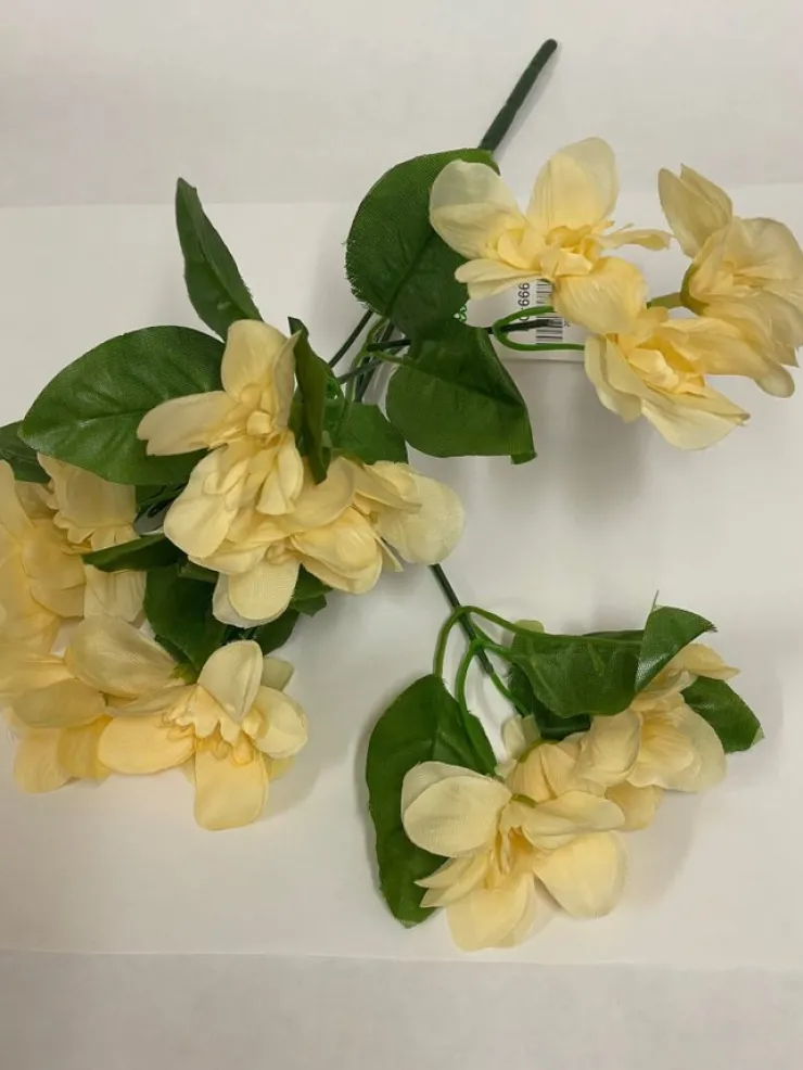 Ljusgula konstgjorda blommormed gröna blad. Perfekt för att skapa en vacker och levande atmosfär i ditt hem.