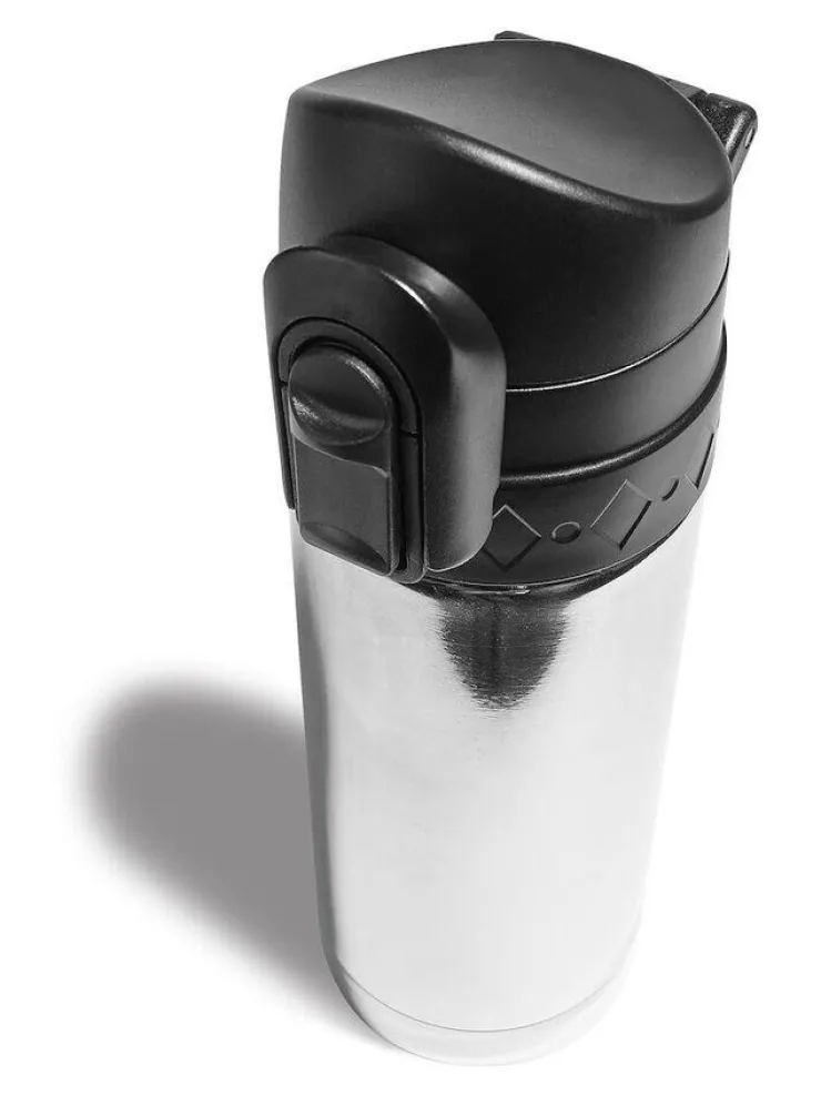 Praktisk termosmugg med låsbart lock som håller värmen länge, det finns även en D-ring som gör att man kan hänga muggen i en karbinhake.