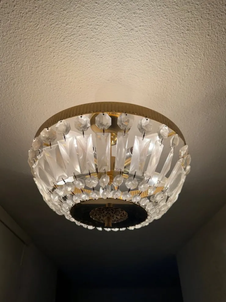 Tradera Lyxig kristalltaklampa i mässing| Lamper