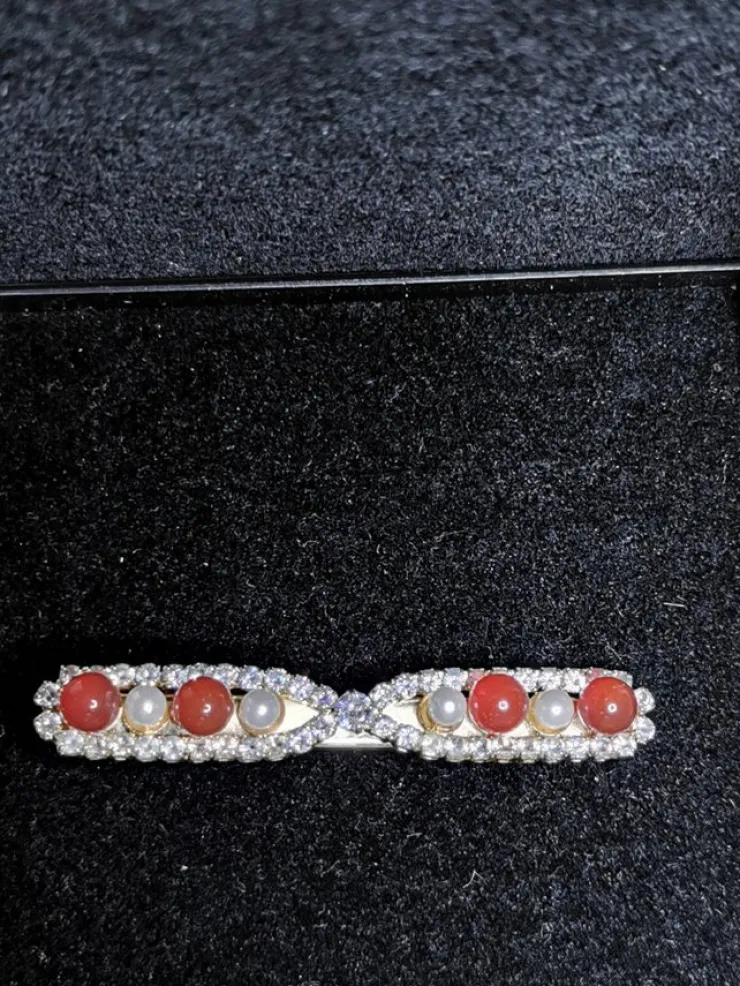 Tradera Lyxig vackert guldpläterat mässing, pärlor, cubic zirconia, carneol.> Hårsmykker & Diademer