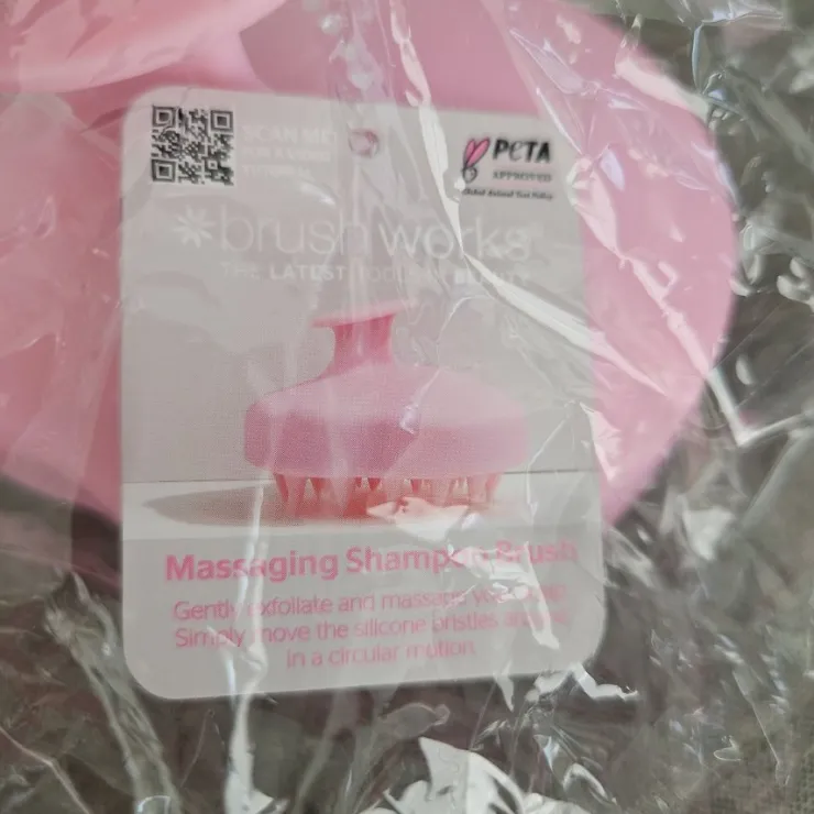 Huvudmassageborste i rosa silikon. Perfekt för att stimulera hårbotten och öka blodcirkulationen.