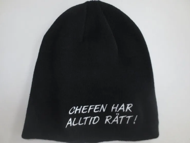Dobbeltstrikket akrylhue med ekstra tyk broderi.