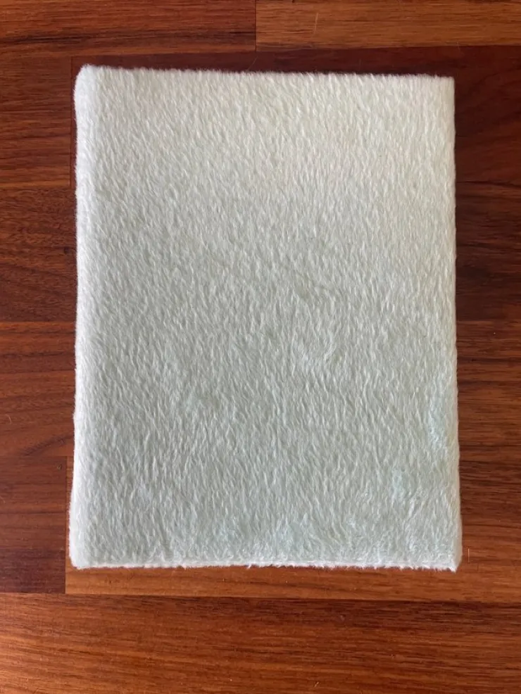 Lille fotoalbum med 18 sider. Forsiden er i en slags hyggelig, fuzzy stof.