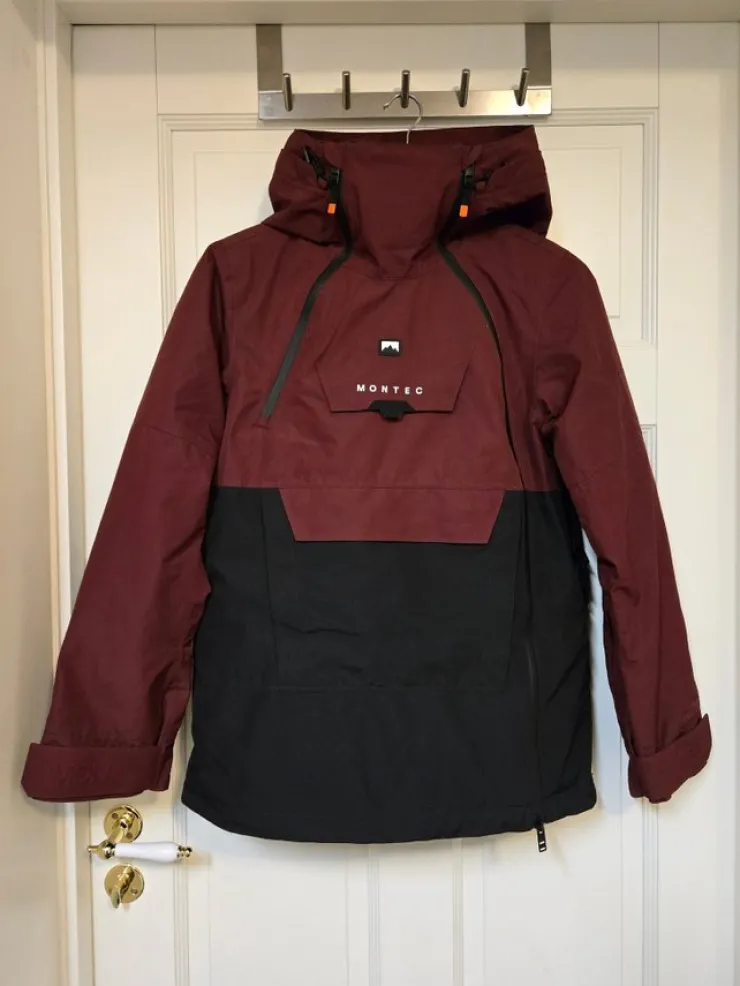 Stor huva, ventilationsdragkedjor under armarna, handledsmuddar, halsskydd i fleece, tre fickor fram, mediaficka, liftkortsficka och två innerfickor.