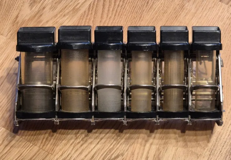 Mynträknare (konduktör) med sex fack / Myntväxlare.