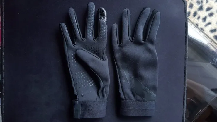 Nike Hyperwarm löparhandskar i storlek Small (S). Handskarna är svarta och har en tight passform. De är tillverkade av ett funktionellt material som andas och håller händerna varma. Perfekta för löpning, fotball eller andra utomhusaktiviteter under kallare väderförhållanden.