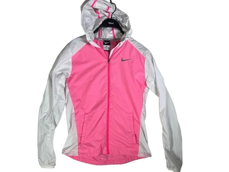 Nike Running Löparjacka Dam Storlek Small Korallrosa Vit Full-Zip Träningsjacka, figursydd.