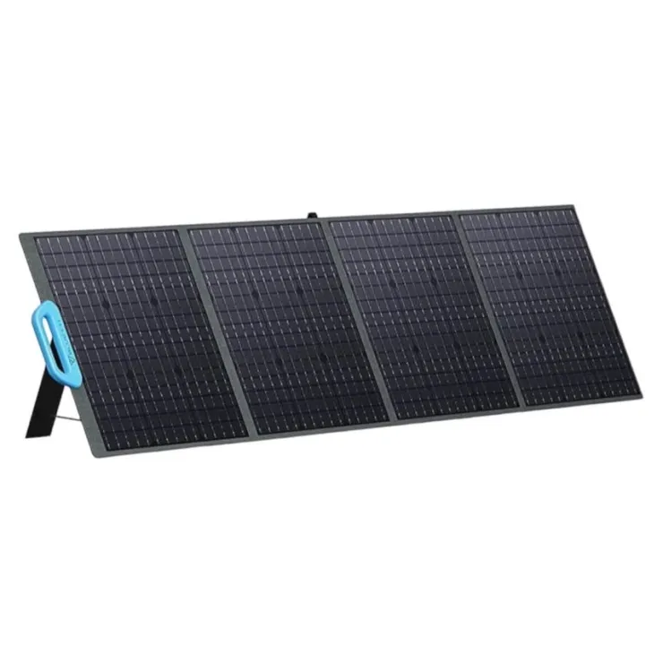 Under gode vejrforhold kan Bluettis 200W-panel generere i gennemsnit 950 Wh dagligt. Solpanelet leveres med en 3 meter MC4-kabel. Via denne forbindelse er det muligt at tilslutte solpanelet i kombination med en adapter til et bærbart kraftværk.