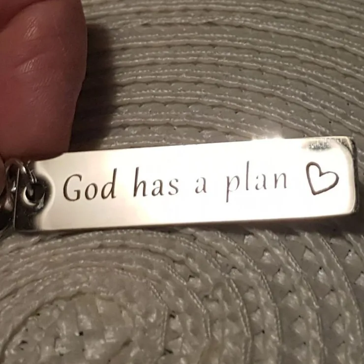 NY. Nyckelring. Kors. "Gud har en plan". Hjärta.