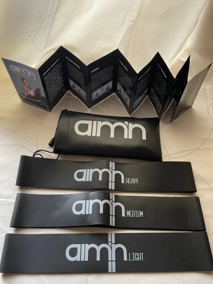 Tradera Nya Aim’n Aimn resistance band träningsband svart övningsbeskrivningar fodral> Gymnastik