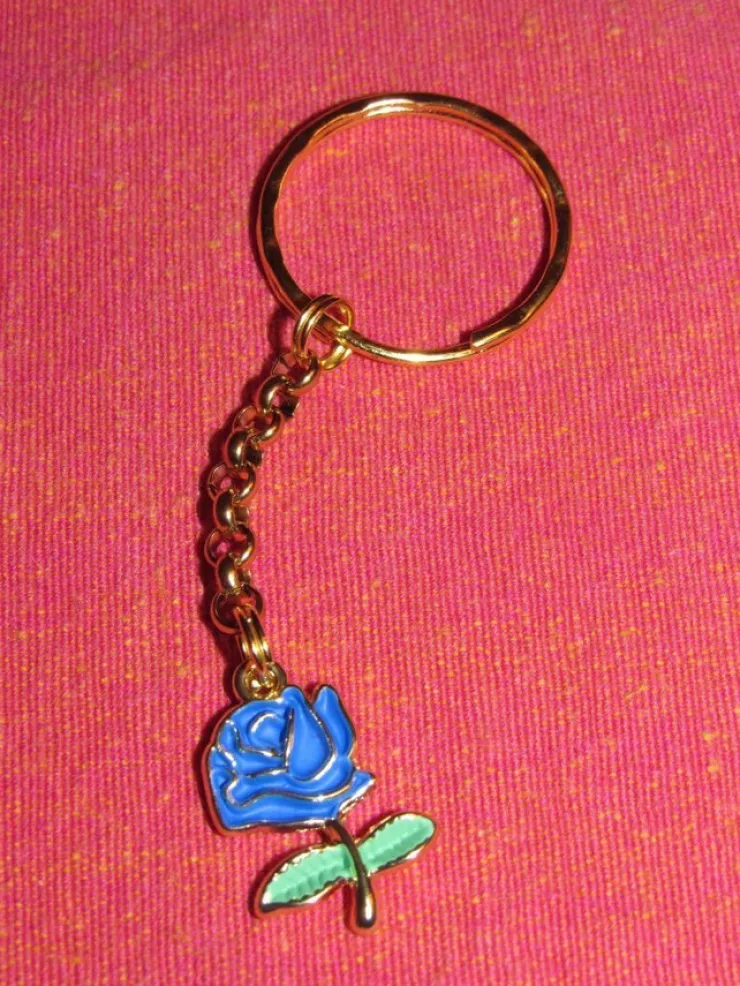 Tradera Nyckelring med blå ros av emalj/zinklegering/rostfritt stål.| Tilbehør
