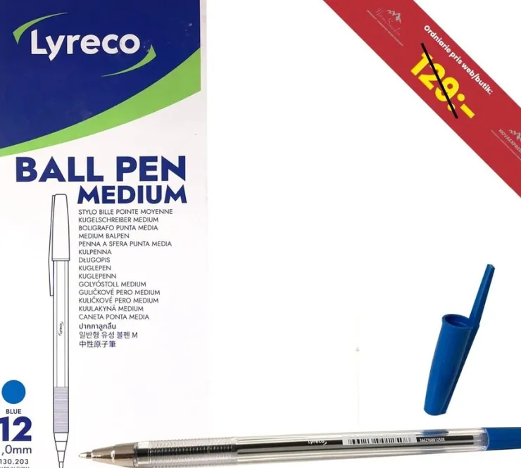 NYTT 12-packl Lyreco kulspetspenna, blått bläck perfekt för kontors- eller skolmaterial. Ergonomisk penna, spets i rostfritt stål, skriv 0,7 mm. |