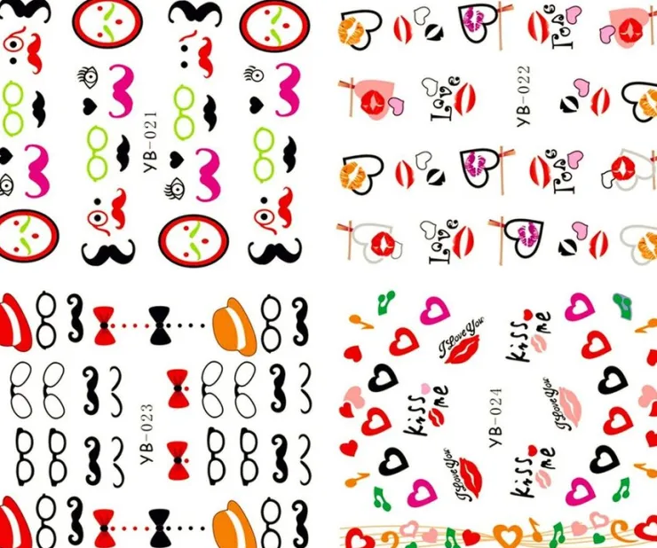 NYTT! 4 ARK Nageldekorationer / 3D Water Transfer Nail Art Stickers 021-024