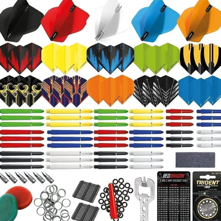 x16 sets nylon shafts, x16 sets flights, x1 pack Trident 180, x2 sets flight savers