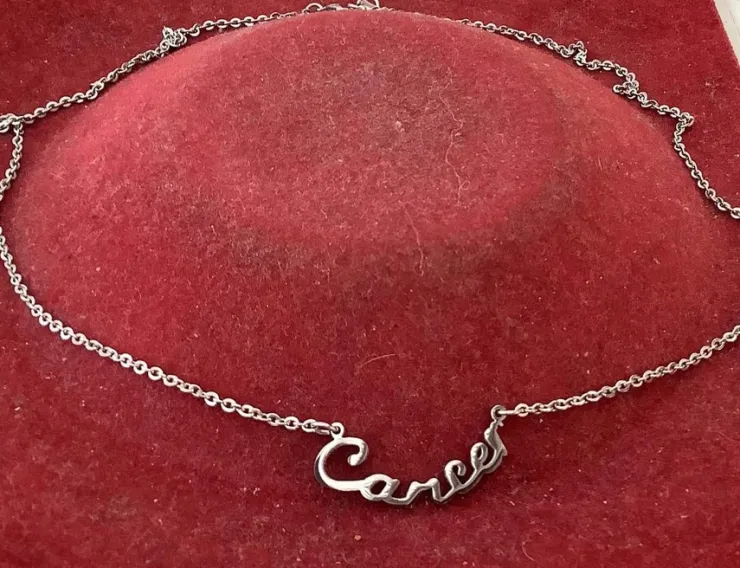 Kedjans längd 48 cm , texten 3 cm långt, nytt