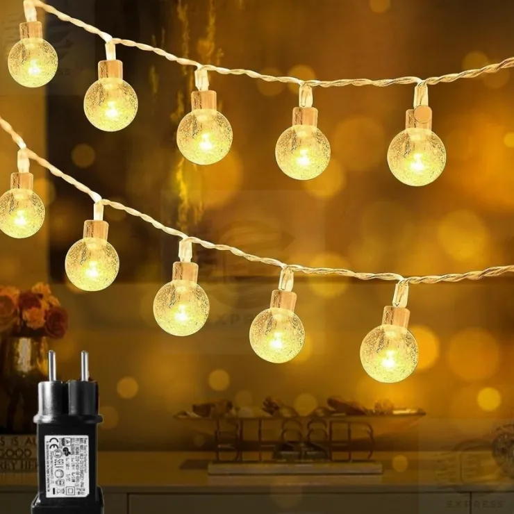 Uppgradera 60 stycken högkvalitativa LED-kristallkula ljuskedja, 2 m kablar och 10 m trådar, totalt 12 m. Bubbelbollen från FANSIR är kristallklar och det högkvalitativa materialet gör den mer slitstark och hållbar.