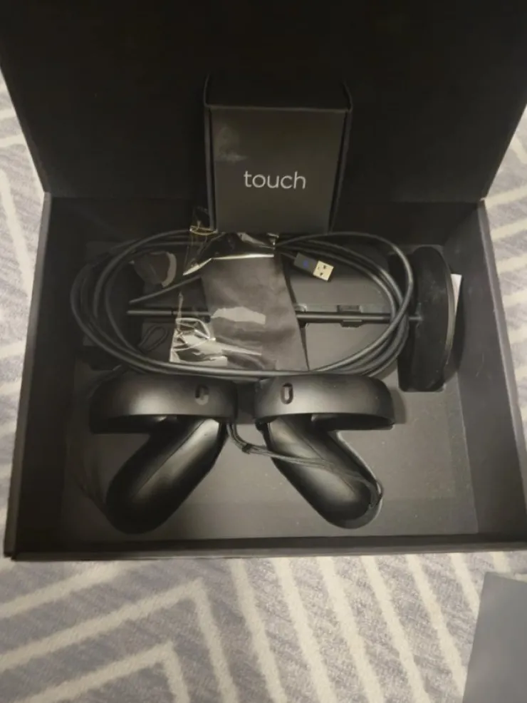 Systemet inkluderer et Rift-headset, to (2) Oculus-sensorer og et par Oculus Touch-controllere