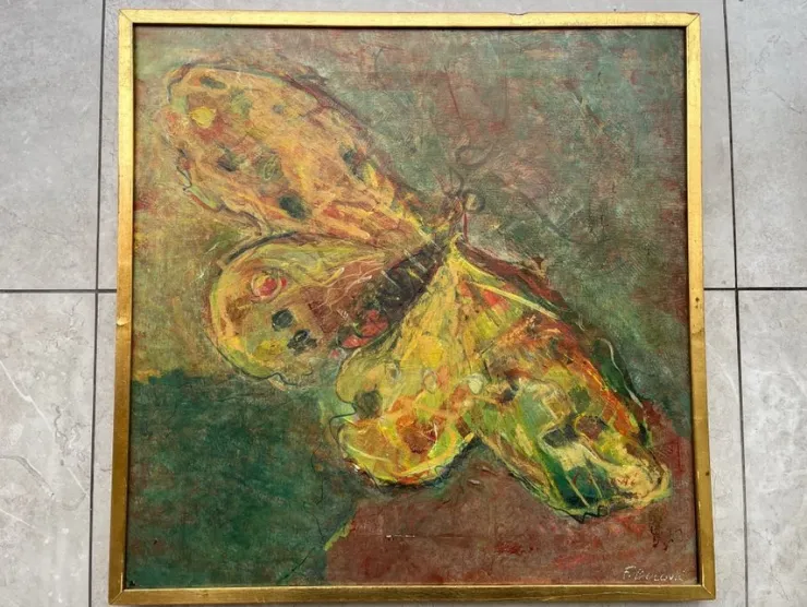 Oljemålning föreställande en fjäril.