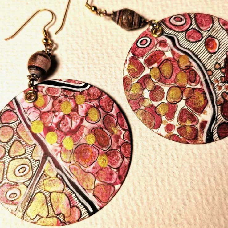 Tradera Örhängen abstrakt handmålat och en handgjord pärla.| Smykker