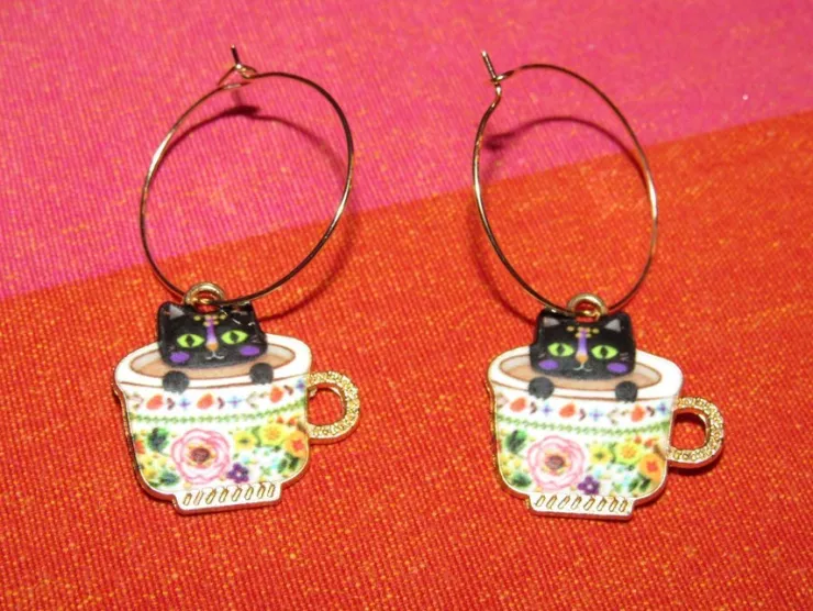 Tradera Örhängen med katt i kopp av emalj/rostfritt stål.> Selvdesignede Smykker