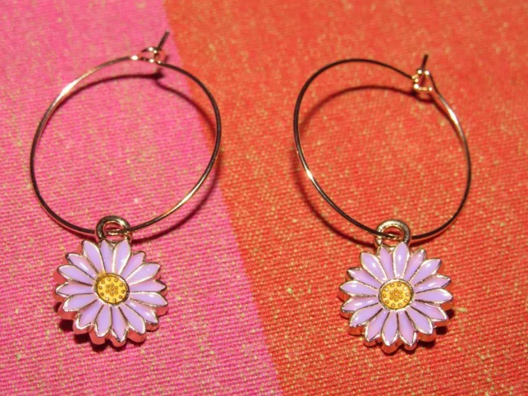 Tradera Örhängen med lila blommor av emalj/zinklegering/rostfritt stål.> Selvdesignede Smykker