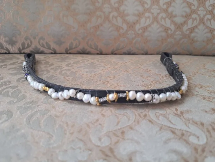 Tradera Pannband i läder med pärlor> Ridning Og Ridesport