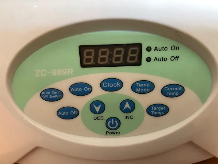 Ovalt paraffinbad för händer och fötter. Baljan har lock och steglös termostat som gör att du lätt kan reglera värmen på paraffinet.