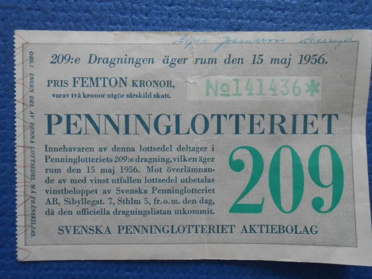 Tradera Penninglotteriet 15 maj 1956> Lotterier & Lodsedler