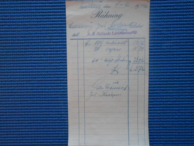 Tradera Räkning AB Hultanäs Lantmannaaffär 1946> Fragtsedler & Fakturaer