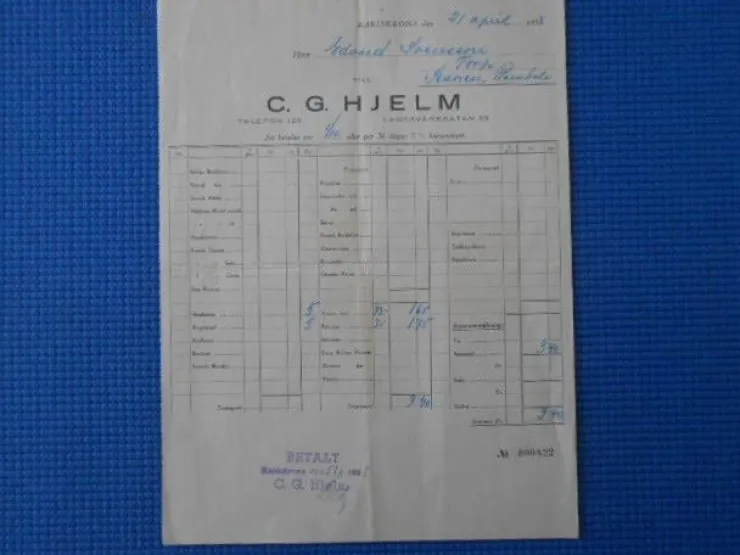Tradera Räkning från C.G Hjelm Karlskrona 1938> Fragtsedler & Fakturaer