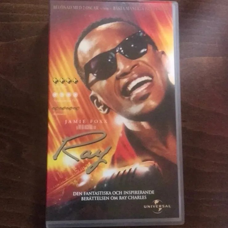 VHS-kassett av filmen Ray, den fantastiska och inspirerande berättelsen om Ray Charles med Jamie Foxx i huvudrollen. Filmen belönades med två Oscar.