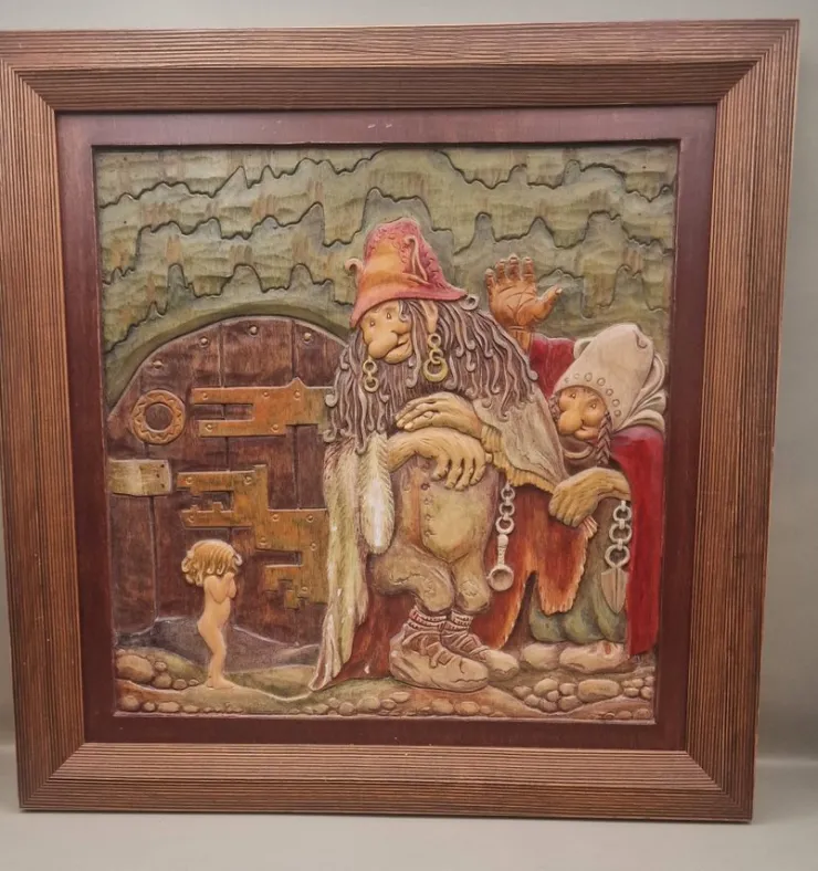 Tradera Relief trä efter Johan Bauer signerad 29,5 cm x29,5 cm| Relieffer