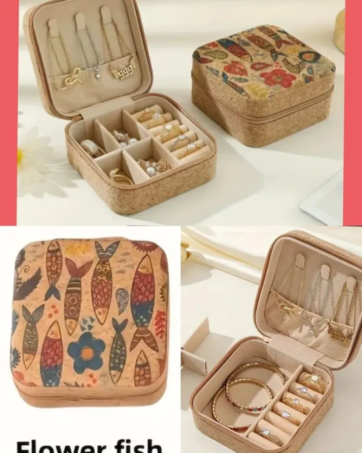 Den här asken har dragkedja så du kan stänga den och i finns det plats för massor smycken.