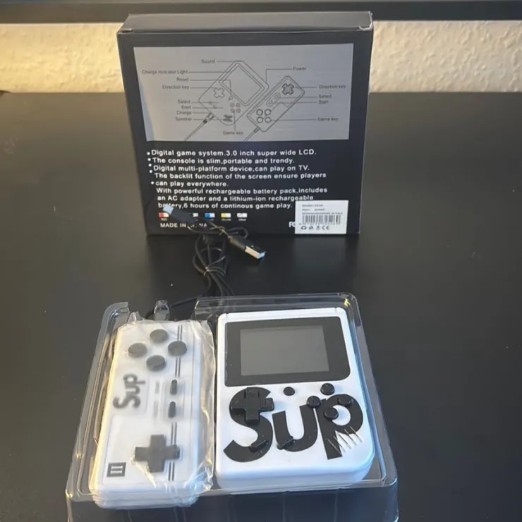 Håndholdt spillekonsol med et trendy design og 400 spil af de klassiske. Konsollen er slank, bærbar og har en 3.0 tommer super bred LCD-skærm. Den har en indbygget multi-platform funktion, så den kan afspille spil på TV. Baggrundsbelysningen sikrer god synlighed. Konsolen har en kraftfuld genopladelig lithium-ion batteripakke, der giver 6 timers kontinuerlig spilletid.