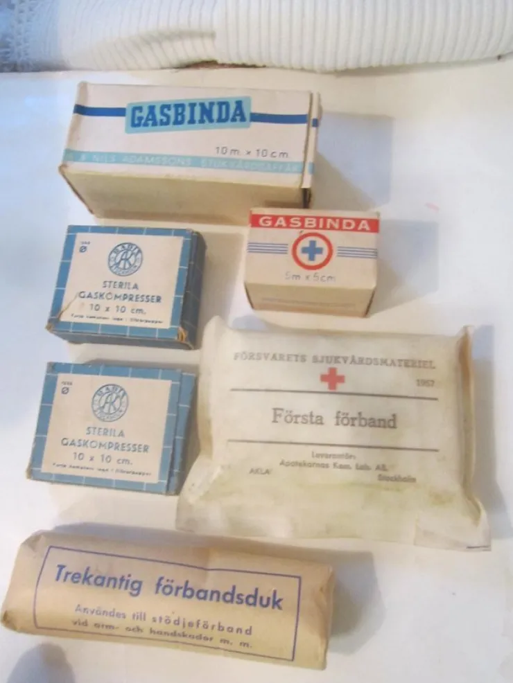 sjukvårdsmateriel 1957-60 talet oanvända se bilder