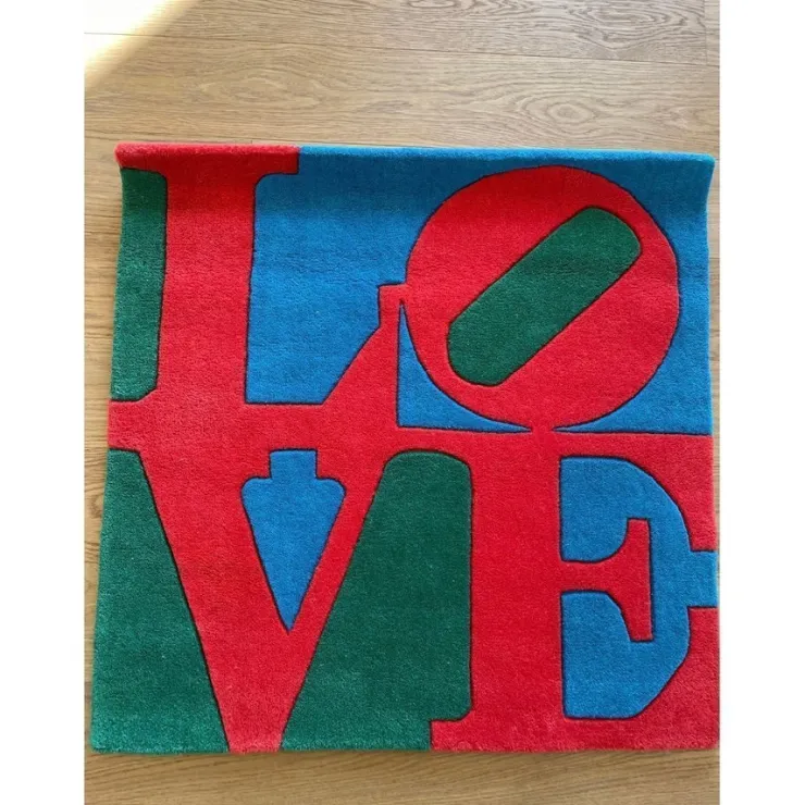Robert Indiana och hans klassiska motiv ”LOVE” i ullmatta, begränsad upplaga i de ”rätta” färgerna.