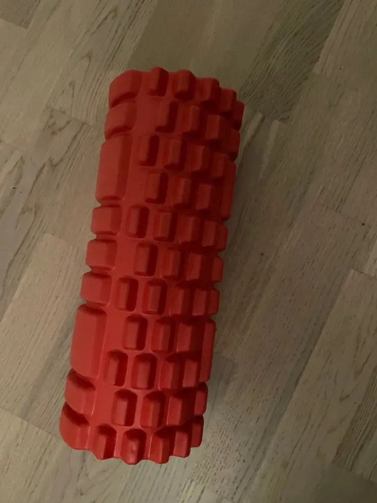 Säljer en röd foamroller. Perfekt för massage och avslappning av musklerna.