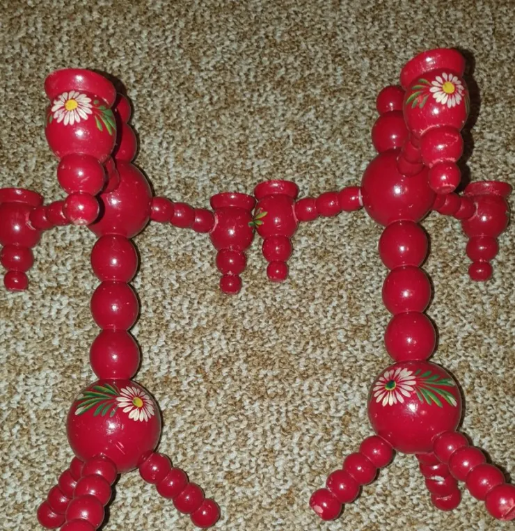 Tradera Röda träkandelstakar med blommör| Indretningsdetaljer