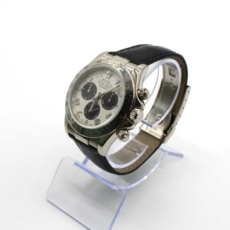 Rolex Daytona Panda Cosmograph i 18K hvidguld. Certifikat mangler, men ægtheden er blevet verificeret hos Nymans Ur i Stockholm. Reference 116519 (Panda).