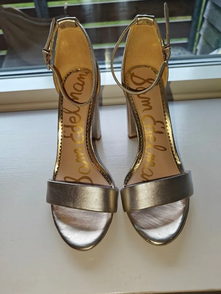 Sælger disse smukke Sam Edelman hæle i guld. De er perfekte til en festlig lejlighed eller en aften i byen.