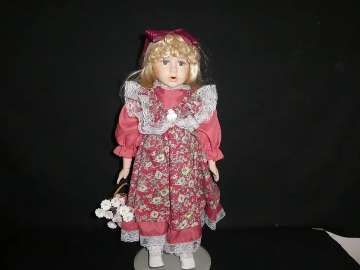 Tradera Samlar Docka med Blommigt Förkläde.| Dukker