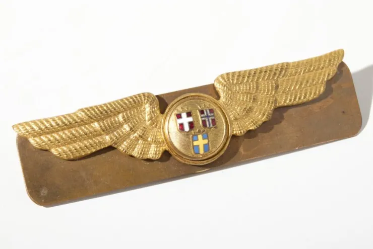 Beskrivning: Uniformsmärke. SAS Scandinavian Airlines. Längd: 8cm. Se Bilder.