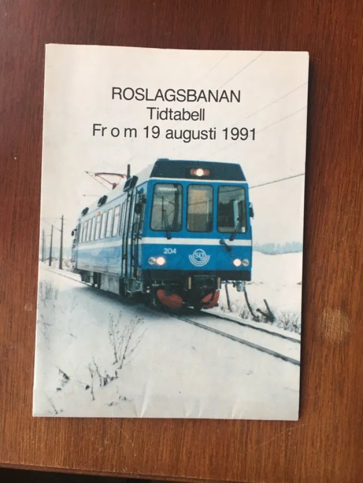 Tradera SL tidtabell Roslagsbanan från 19 augusti 1991> Køreplaner