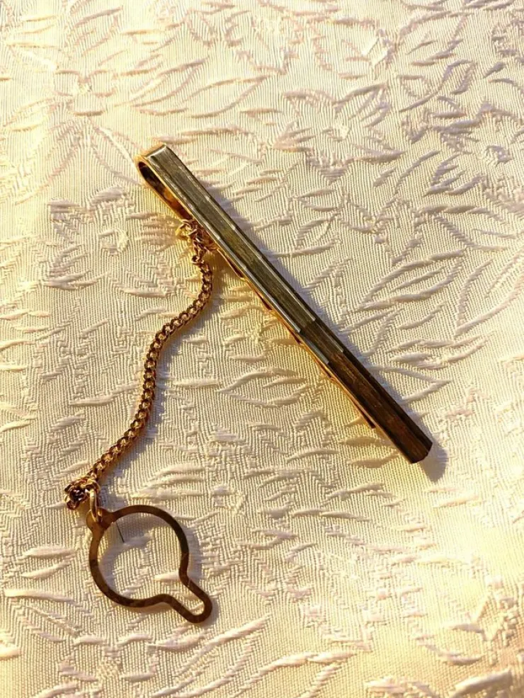 Här en Slipshållare i förgyllt äkta silver . Säkerhetskedja