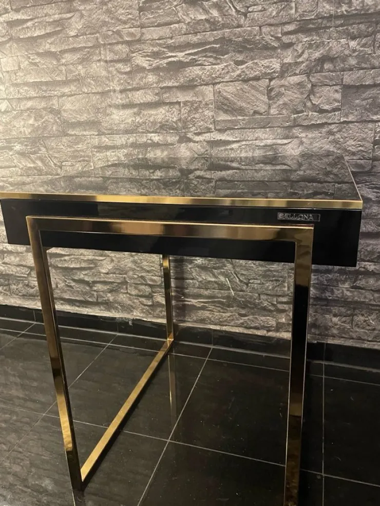 Tradera Snygg svart sidobord med guld ben| Møbler
